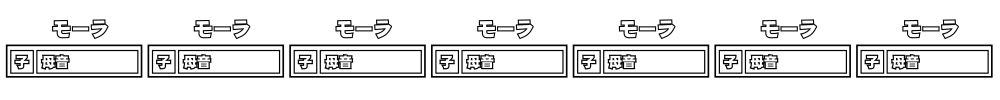- モーラ拍は、子音が必ず 拍(音節基) の後ろにある。