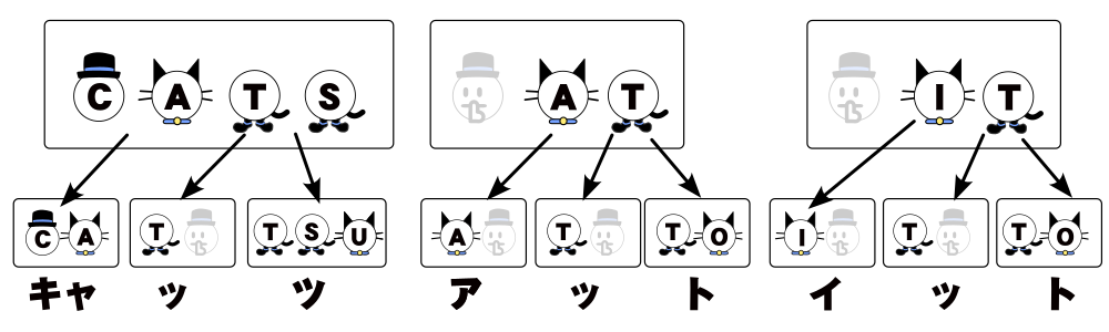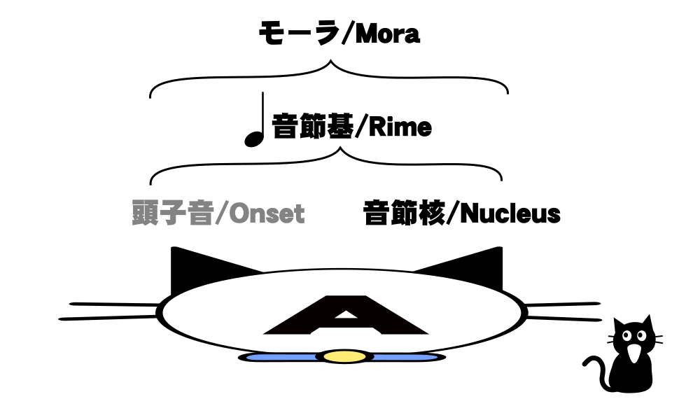 この図中で帽子が頭音節、猫が核音節、靴が末音節を表しています。